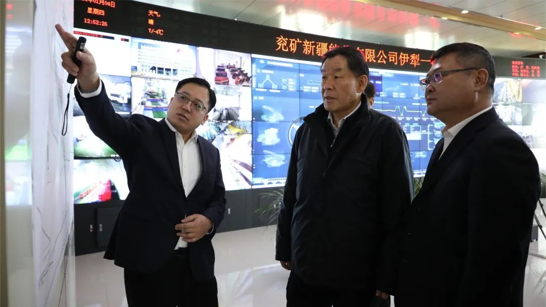在伊犁一矿,胡开江一行先后深入该矿调度室、智慧矿山指挥中心进行实地查看,详细了解采掘工作面布置、生产组织、灾害治理、智能化应用等情况。