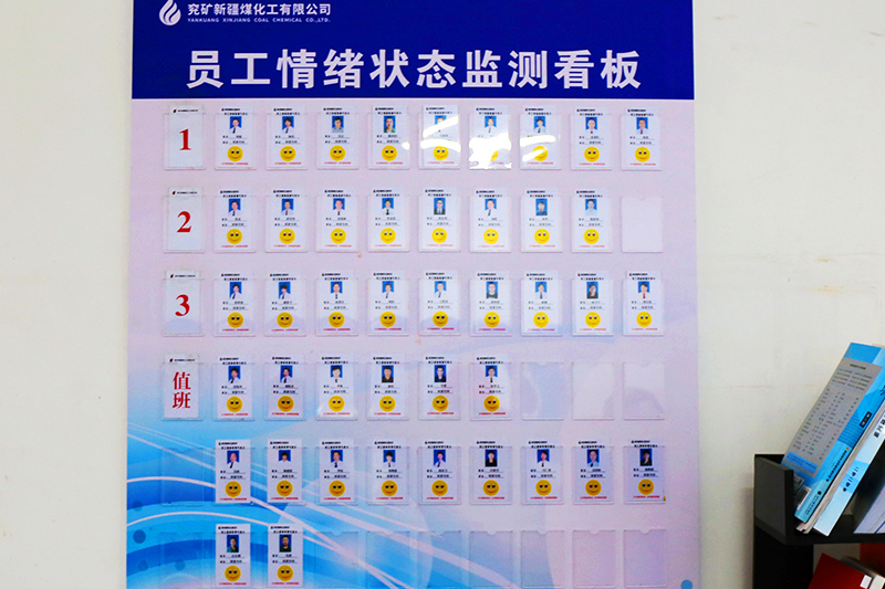 在该公司尿素车间党支部巡检值班室有一张特殊的情绪看板,标记着每位职工的“表情”,以此了解大家的工作状态,及时解决职工情绪的“不稳定”。这也是该党支部人性化管理方式之一。他们还建立了经常性思想交流和不拘形式的谈话机制,充分关注职工诉求,尽力分担职工忧愁,让职工的“笑脸”开启“安心”工作模式。