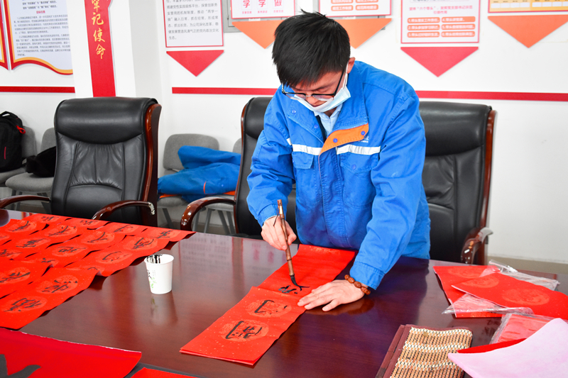 张灯结彩“喜庆年”。挂灯笼、贴春联,是年味不可或缺的一部分。该公司在节前专门举办了“泼墨书写对联新春祝福活动”,发动干部职工展纸援笔、泼墨挥毫,用“春风春雨春色 新年新景新家”等寓意祥和的对联和苍劲灵动的福字,道出对新年幸福生活和企业高质量发展的美好祝愿。办公楼前高高挂起的大红灯笼、对仗工整的春联,为银枝璀璨的厂区增添了浓浓的“年味儿”。