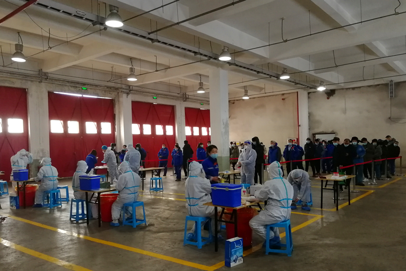 当天早上,该公司利用交接班时间人员相对集中的特点,组织全体员工完成了春节假期后首次核酸采样。现场,信息录入人员、核酸采样人员、后勤保障人员紧密配合,从人员组织、物资准备到核酸采样,各环节井然有序、高效完成。参检人员按照时间安排,间隔一米排队,登记个人信息,依次进行咽拭子采样。不到2小时完成了665人核酸采样,涵盖各个科室(车间)及外协单位人员,达到了“应检尽检”的要求,为节后确保正常安全生产秩序守好“防疫关”。