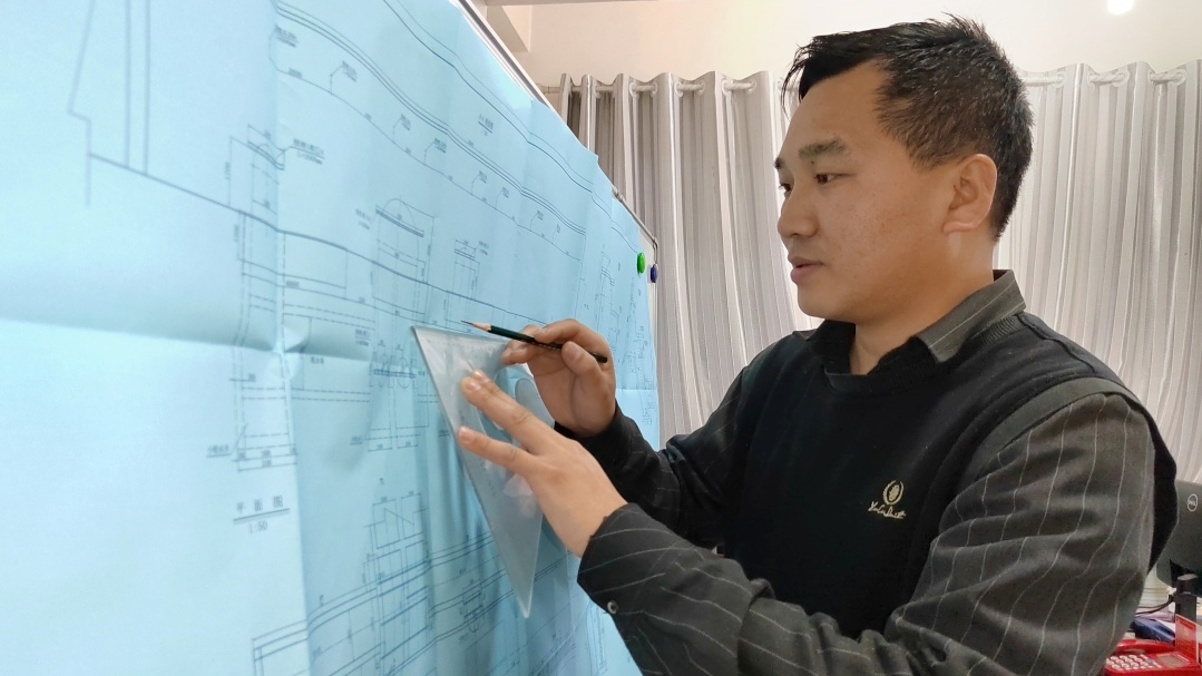 ▲李乐伦检查现场设备油位 胡壮壮 摄