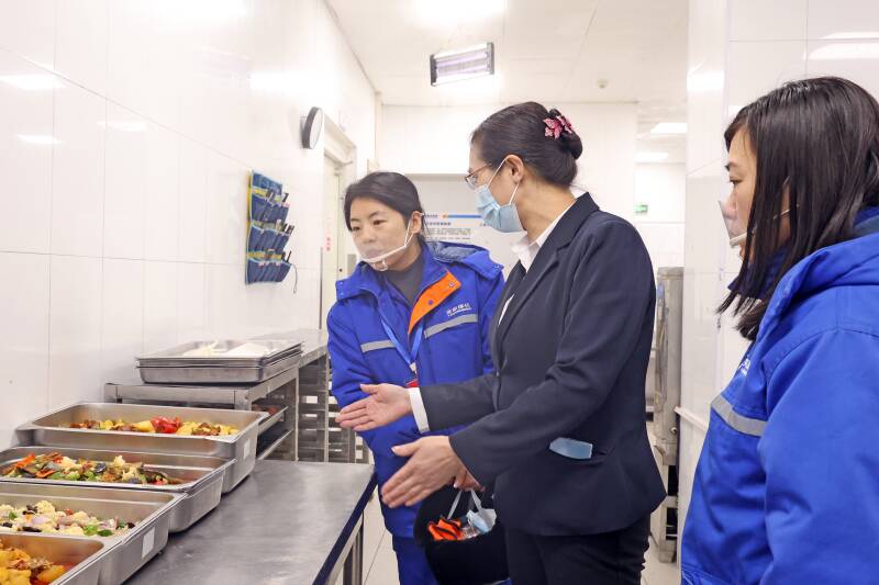 巡查组创新运用“听、查、问、拍、评”五字工作法,构建全方位监督网络。在三胺立体库,职工代表们详细查看现场警示标语及劳动保护用品佩戴情况;走进尿素包装线,他们重点检查了职工工作环境;深入食堂后厨,查验食品留样记录是否规范、储存条件是否达标,确保“舌尖上的安全”不留死角。