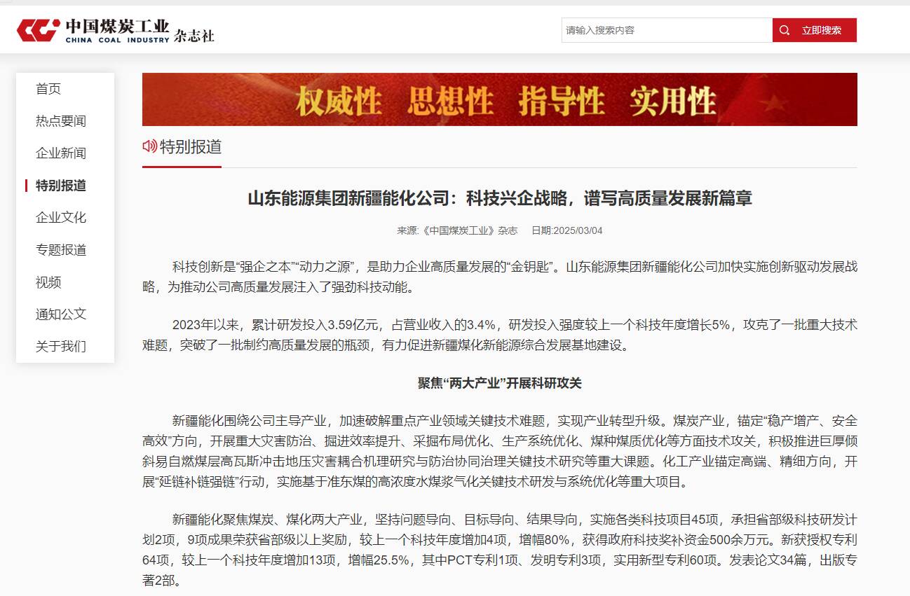 科技创新是“强企之本”“动力之源”,是助力企业高质量发展的“金钥匙”。山东能源集团新疆能化公司加快实施创新驱动发展战略,为推动公司高质量发展注入了强劲科技动能。