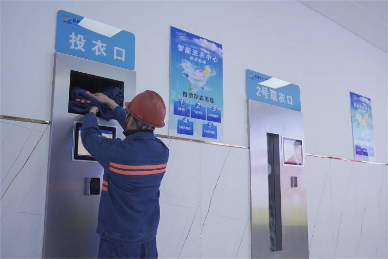 机电工区职工曹东燕至今记得,过去工作服上绑着识别牌,一旦丢失就手忙脚乱。如今,智能洗衣中心的芯片植入技术让“人衣匹配”成为现实。他笑着说:“现在刷卡就能取衣服,再也不用满世界找牌子了!”