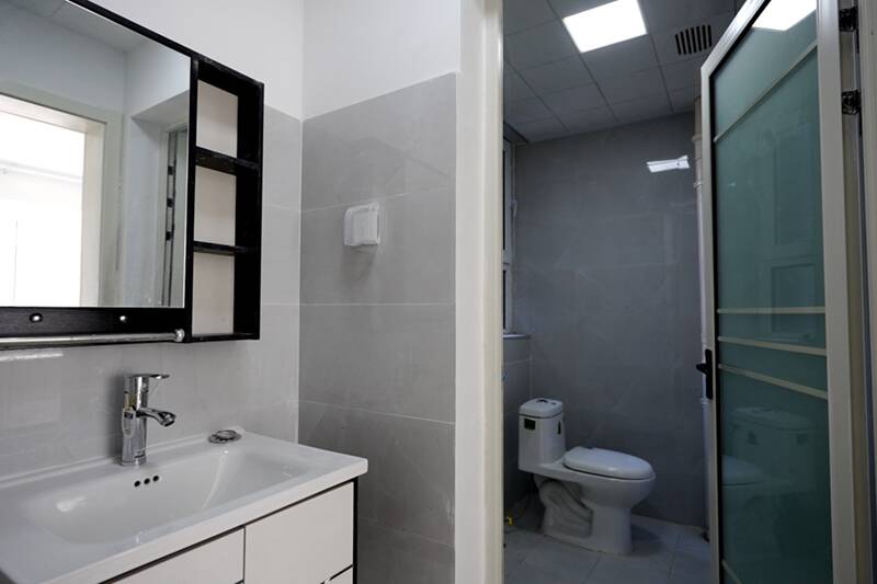 新公寓建筑面积达4800多平方米,一室一厅、两室一厅等户型满足职工多样化需求。每个房间配备地暖、净水系统,独立卫浴干湿分离,厨房预留了橱柜、消毒柜等安装位,实现拎包入住。