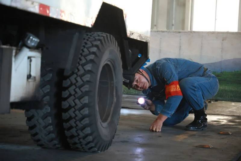 他上岗的第一件事,就是询问当班车况,井下运输环境,然后检查“三油两水”、车辆外观、仪表盘等这些状态。如果不正常,他就联系维修班组过来处置,修好以后再下井。在运输过程中,如果巷道路况复杂、运行间距不足,他便及时暂停车辆运输,然后汇报给区队进行综合研判。