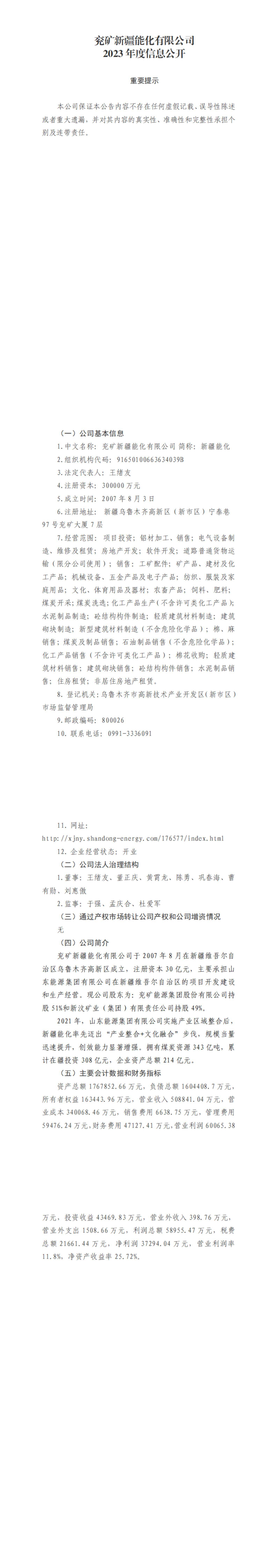 兖矿新疆能化有限公司2023年度信息公开-博天堂pa