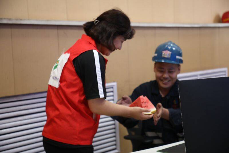 入夏以来,“送清凉”志愿小分队根据天气情况,制定“送清凉”计划表,明确了井口、信息站、地磅房等重点送清凉地点,储备西瓜、清凉油、风油精等防暑降温物品。每周根据天气情况开展一次送清凉活动,让清凉成为这个夏天的主旋律。