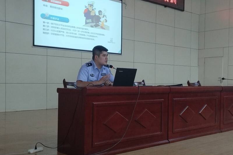 “先生,您从库车飞往济南的航班因故取消,给您造成的一切损失由我们航空公司进行补偿……类似这样的诈骗电话一定不能相信,前不久,财务科的小伙就因为这样一通电话损失了一个月的工资。”这是永新煤矿反诈宣传志愿者在区队班后会上宣讲的一幕。