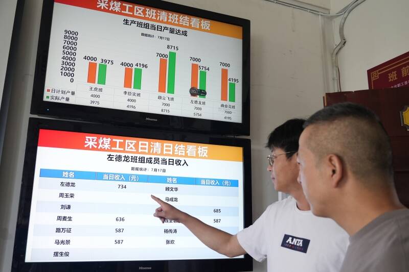 “每天来第一时间就是看收入、看产量,看到自己班组收入比其他班组少,或者自己班组产量没达标,就会想,是不是哪里没做到位,得好好改进。”伊新煤业采煤工区职工曲业亮说。