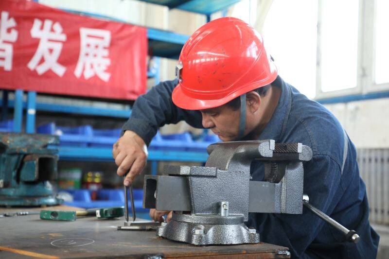 “尺寸得勤量着,差一点儿就能锉废了。”王建国告诉笔者,钳工的工作主要是切削加工、机械装配和修理作业,尤其是手工活,锉削、锯切、划线等技能都要掌握,十分注重精度。