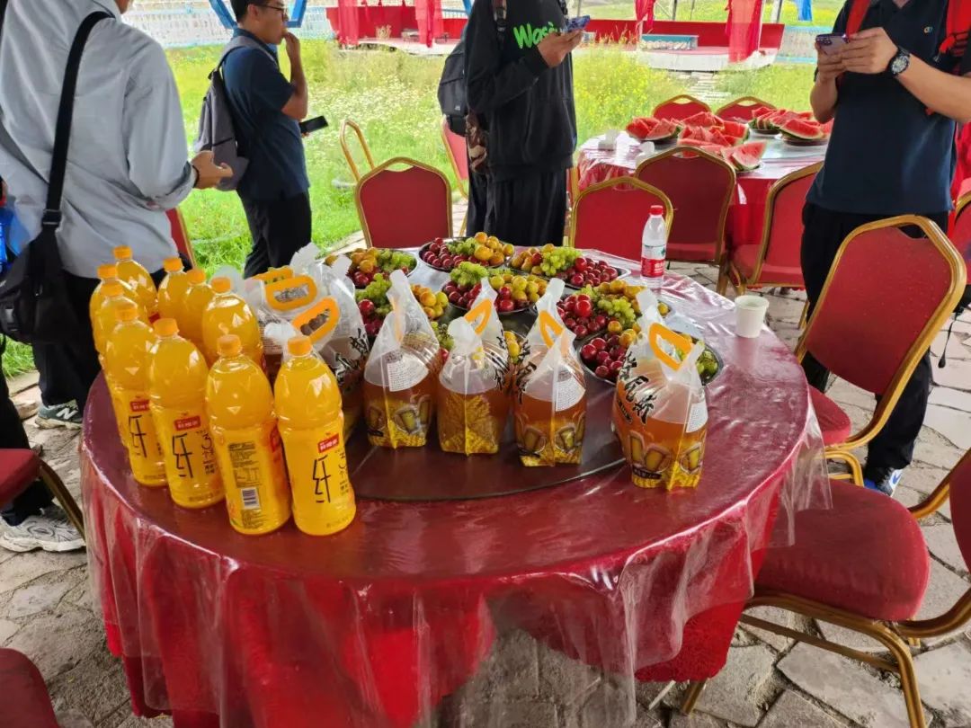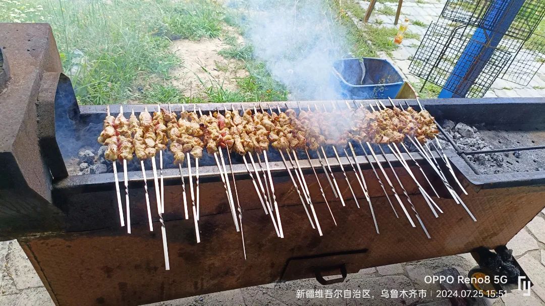 下午,同学们来到了新疆少数民族毡房,工作人员为同学们准备好了鲜切牛羊肉,由同学们自助烧烤,新疆特色卡瓦斯、乌苏啤酒、饮料、水果一应俱全……