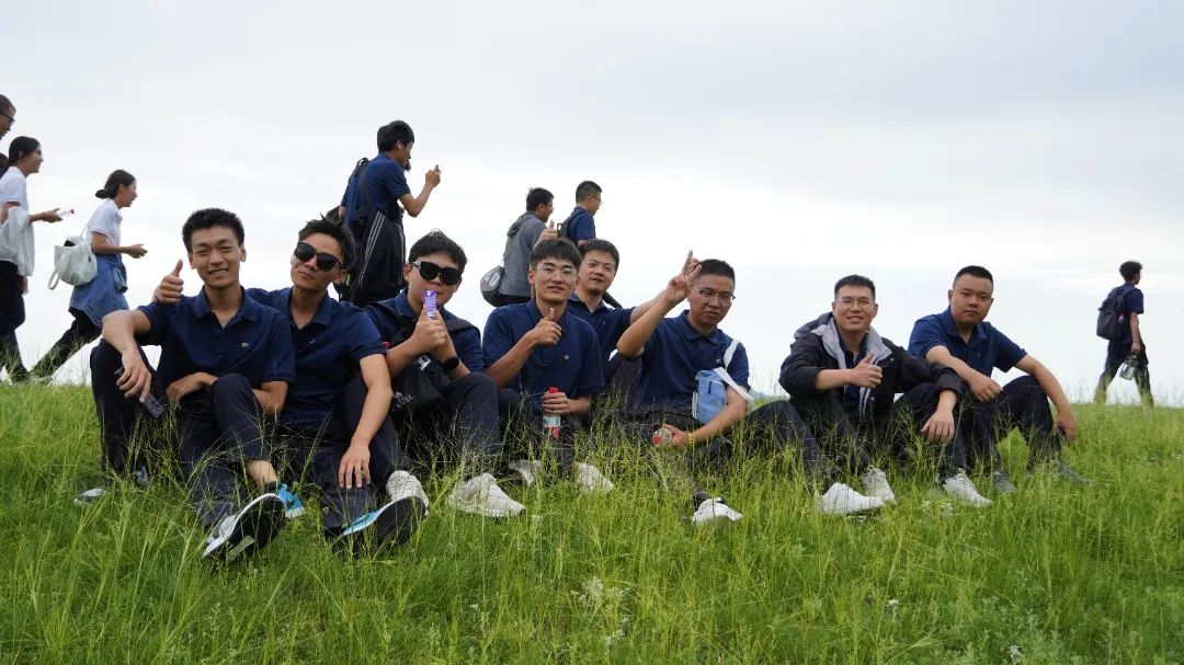 走过7公里,同学们顺利登顶,并合影留念。不论登顶过程多么崎岖,眼底美景尽收时,爬山的苦与累就都值得了。
