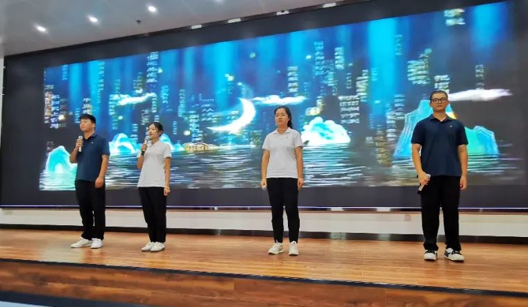 ▲新员工李爽、张金艳、徐慧琳、黄威展 诗朗诵《明月几时有》
