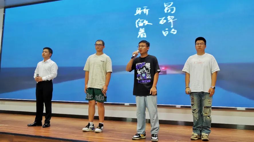 ▲新员工刘晨灏、刘琦峰、黄威展、肖尘枭 歌曲《平凡之路》