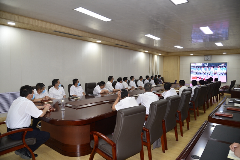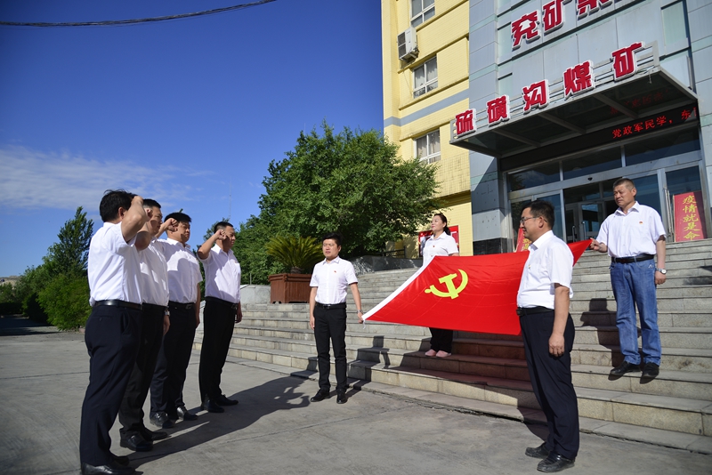 硫磺沟煤矿党委组织党员职工升国旗、集体观看庆祝大会直播盛况,这是该矿隆重庆祝中国共产党成立100周年系列活动之一。