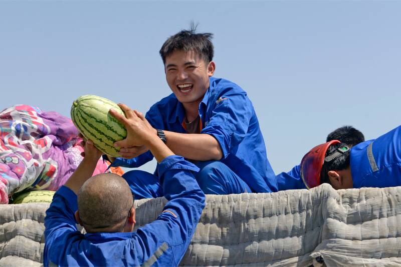 “我们岗位人少,给我几个小西瓜就行,大西瓜就给现场巡检的同事们吃吧,他们最辛苦。”分析室的女职工说。