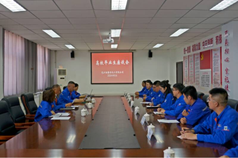 与此同时,该公司组织召开高校毕业生座谈会,同“新”聚力,共话未来。新入职大学生们依次就个人情况、入职后的体会、工作想法等方面进行互动交流。两名往届优秀毕业生代表结合自身成长经历,从角色转变、安全生产、人才培养、能力提升等方面与新员工进行了深入交流。鼓励新入职大学生不断求知奋进、担当作为,练就真本事,早日成长,独当一面,实现自我人生价值,为公司发展添砖加瓦。
