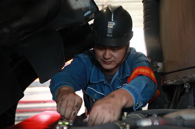 “除了核心部件,其他的机修、换‘三油两水’、轮胎等这些维修和保养我们都自己干,没有出现过车辆趴窝的情况。”回族小伙哈雯豪是车队运输班组长,他告诉笔者,车队里每辆车都责任到人,大家对待胶轮车都像对待自己的“私家车”一样爱惜,定时保养,车况“嘎嘎板正”。