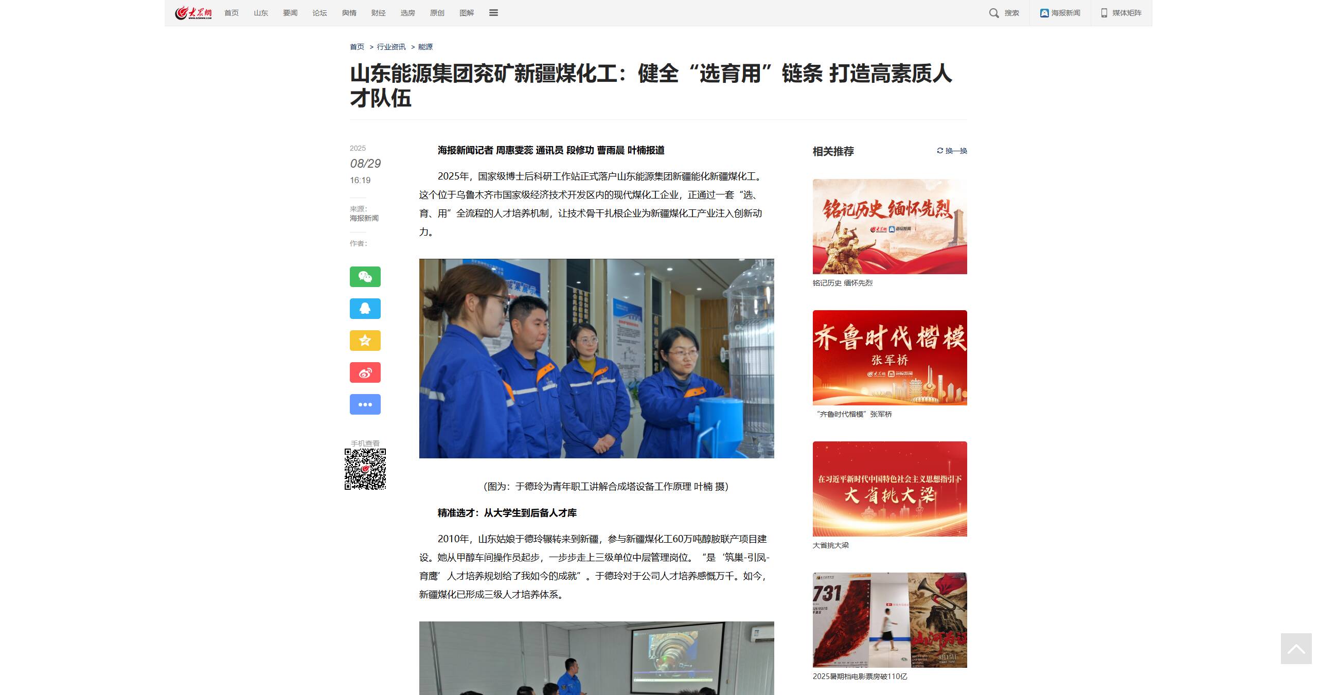 2025年,国家级博士后科研工作站正式落户山东能源集团新疆能化新疆煤化工。这个位于乌鲁木齐市国家级经济技术开发区内的现代煤化工企业,正通过一套“选、育、用”全流程的人才培养机制,让技术骨干扎根企业为新疆煤化工产业注入创新动力。