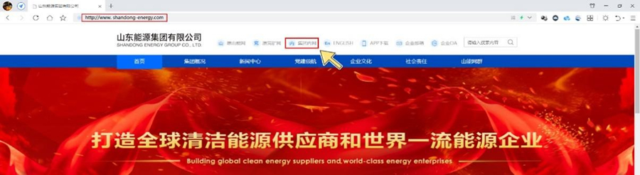 (1)打开http://www.shandong-energy.com进入博天堂pa首页,点击顶部导航菜单“集团内网”。