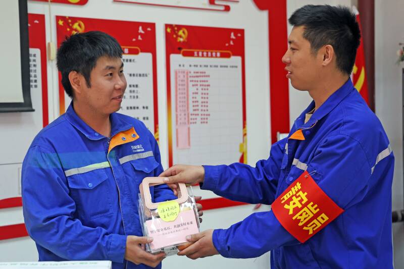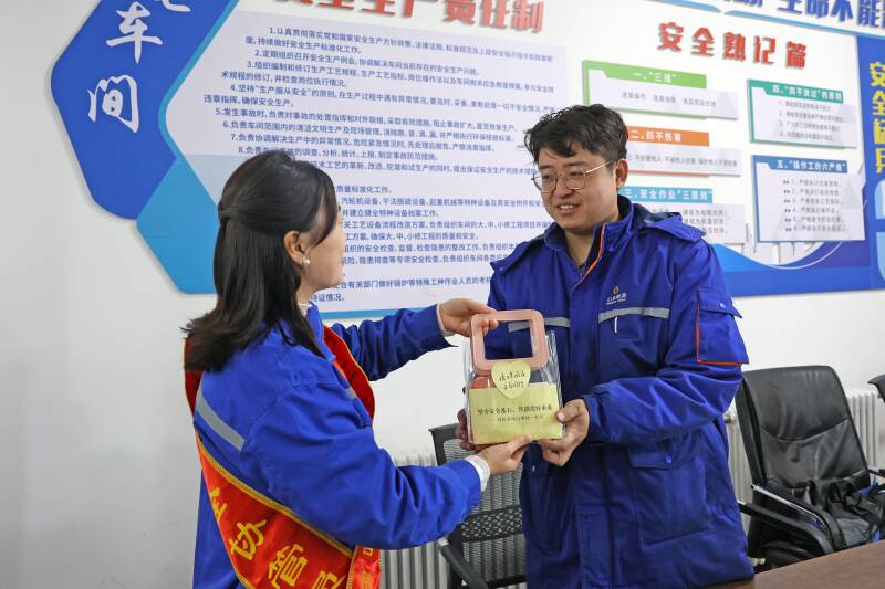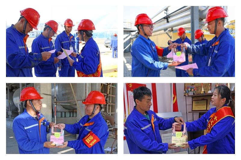女工协管员、青安岗员、群监员给职工送上暖心礼袋,用质朴的语言督促职工遵守安全规章制度,不断提升自我安全生产意识,筑牢安全生产防线。
