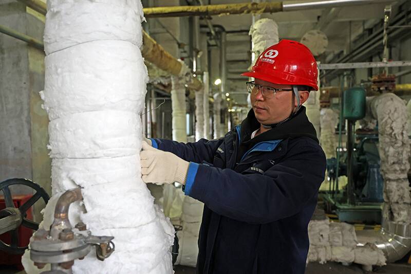 采用“网格化分工 专家式会诊”模式,将防冻保温任务细化到岗、责任到人。各车间按“区域划分、专人负责”原则,对室外消防栓、循环水管道、仪表阀门等关键设施加装专用保温棉帘、电伴热装置,同步推进生产区域防滑垫铺设、消防设施压力检测及气体泄漏监测装置调试,全面消除低温环境下的安全隐患,确保装置设备安安稳稳过“暖冬”。