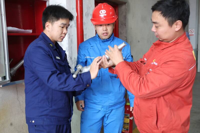 此外,公司聚焦实战能力提升,组织干部职工围绕正压式空气呼吸器佩戴、消防水带连接、灭火器使用等核心技能开展“手把手”实操训练,引导大家在“学中练、练中悟”,将应急处置“硬技能”融入日常操作规范,截至目前累计培训800余人次,有效提升职工消防安全综合素养。