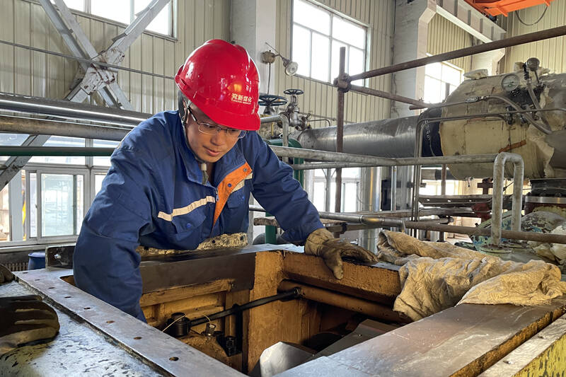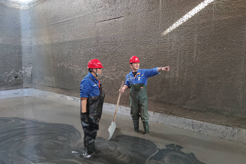 吴慧军,是该公司给排水车间主任,这位检修“指挥员”正在污水石灰软化澄清池池底,全神贯注地盯着旧填料清理工作的进度。