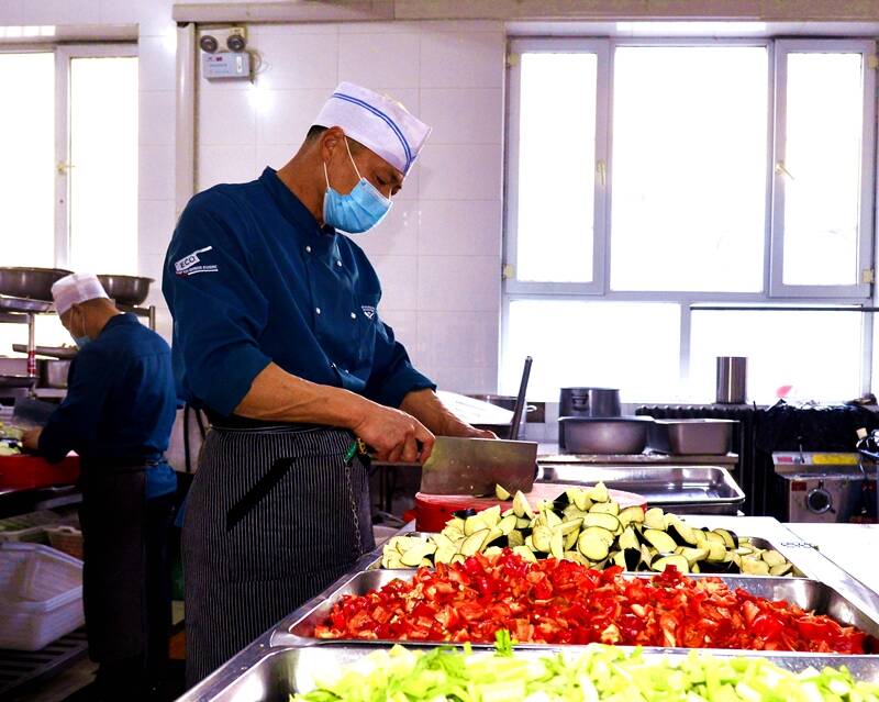 “小周,今天午餐的宫保鸡丁味道真是绝了,比我在昌吉星级酒店吃到的味道都正宗。”这是该矿生产技术科技术员张嘉琪与同事周银兵的一段对话。