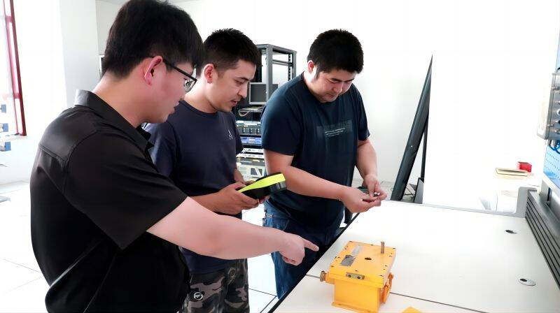 图为周忠广与工友在地面机房测试四网融合