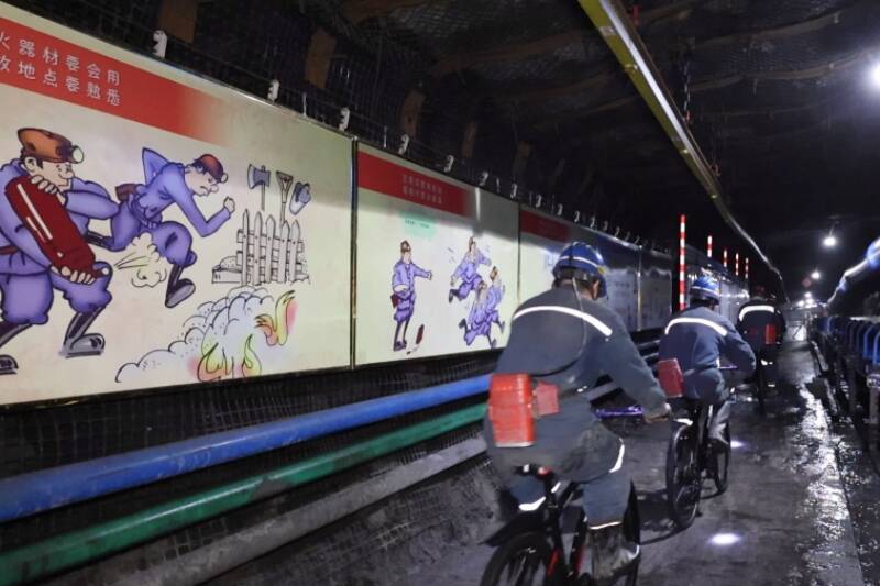 井下环境复杂,为了让自行车能够安全运行,该矿制定了行车管理制度和安全措施,对自行车停放、乘骑等做出要求,确保骑行路段没有安全隐患,每一位职工能够爱惜骑行。
