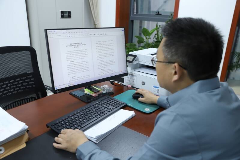 ▲新疆能化审计法务部职工查阅“456”工作法意见 郭文冉 摄