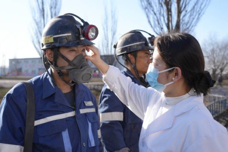(医务人员检查职工身体状态)