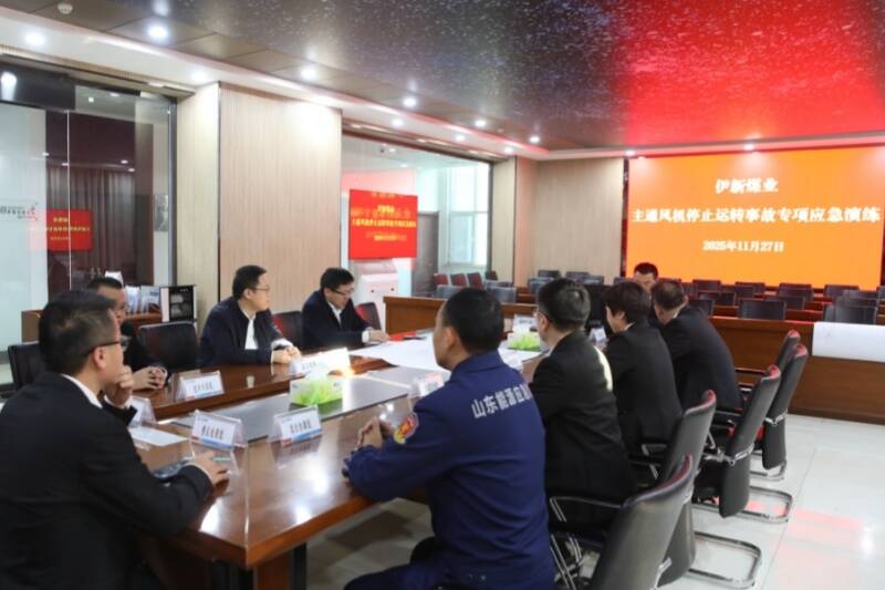 随着紧急撤人指令在井下响起,伊新煤业矿井主通风机停止运转事故专项应急演练正式启动。本次演练模拟东部立风井主通风机因通信故障停机,导致全矿停风事故,全面检验矿井在突发事故下的应急响应、协调指挥和抢险救援能力。