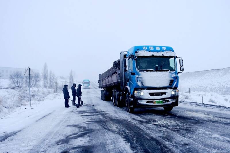 12月的伊犁河谷,银装素裹。今年入冬以来的首场降雪伴随着大风如期而至。为广袤的矿区披上厚厚的冬装。但也给煤炭外运的生命线带来了严峻考验,运输车辆通行受阻。
