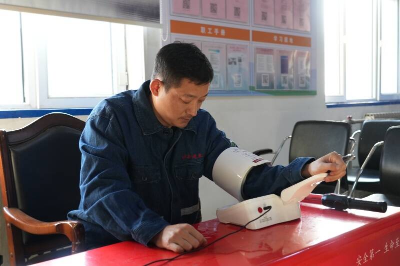 (下井前对职工进行血压检测)